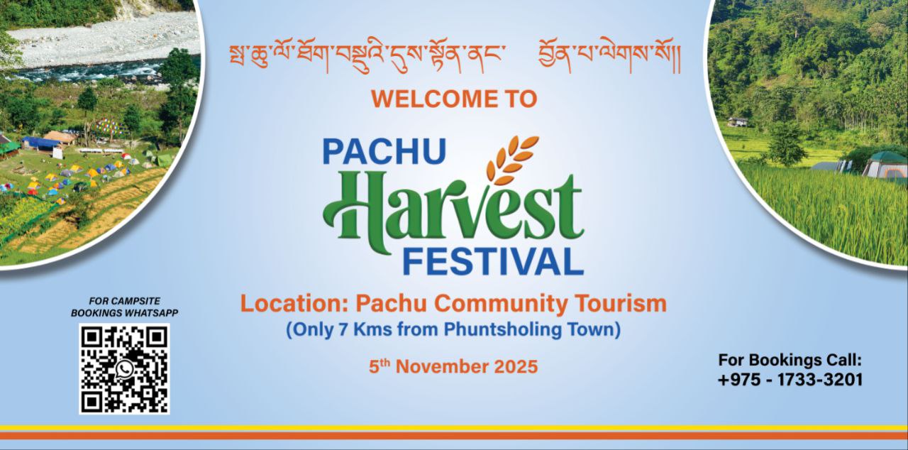 Chhukha Dzongkhag Administration is pleased to announce that we will be conducting the first ever Pachu Harvest Festival and Chhukha Bird Race from 5-8 November 2025 in Pachu Community Tourism site and at Jigmechu Ecotourism site.